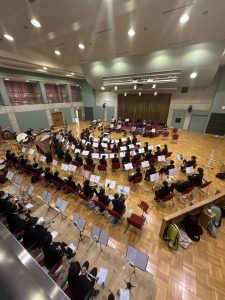 その後は、今回の題材にしたマスネ作曲、「歌劇 タイス」の吹奏楽編曲版を各々が指揮し、楽曲演奏にあたっての注意点、3連符の1拍はめ込み等、表現に沿った指揮棒の振り方についてみっちり実践し、約3時間のワークショップを終えました。