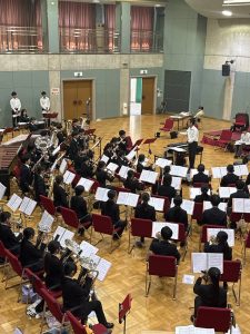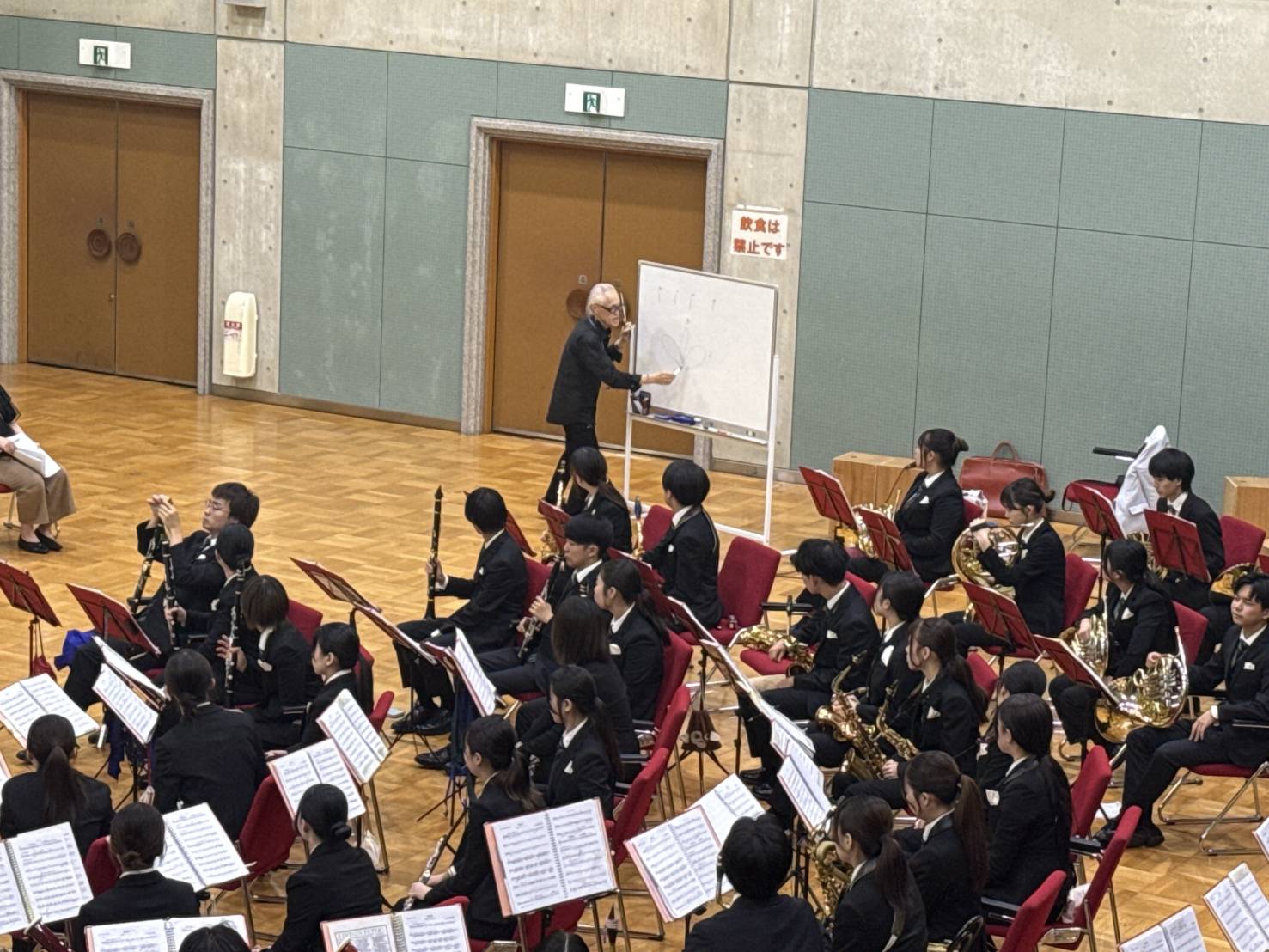 近隣の中学校・高等学校、社会人の団体などで吹奏楽指揮に携わる人や学生指揮者を対象に開催し、当初想定していた最大受講人数約10人を超える14人の参加になりました。昨年は諸般の事情から開催できず、2年ぶりの開催となりました。吹奏楽部の松井隆司音楽監督が指導にあたりました。