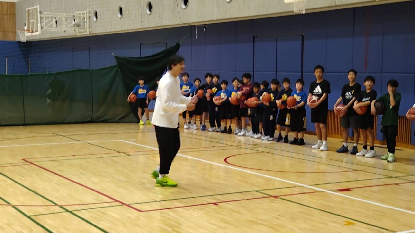 特別講師として、Bリーグのライジング福岡などで活躍した元プロバスケットボール選手で現在は指導者を務める堤啓士朗氏を招き、堤講師が試合や練習で取り組んでいた「シュート」「ボールハンドリング」「フットワーク」や実践的なドリルなどバスケットボールのトレーニングを指導しました。